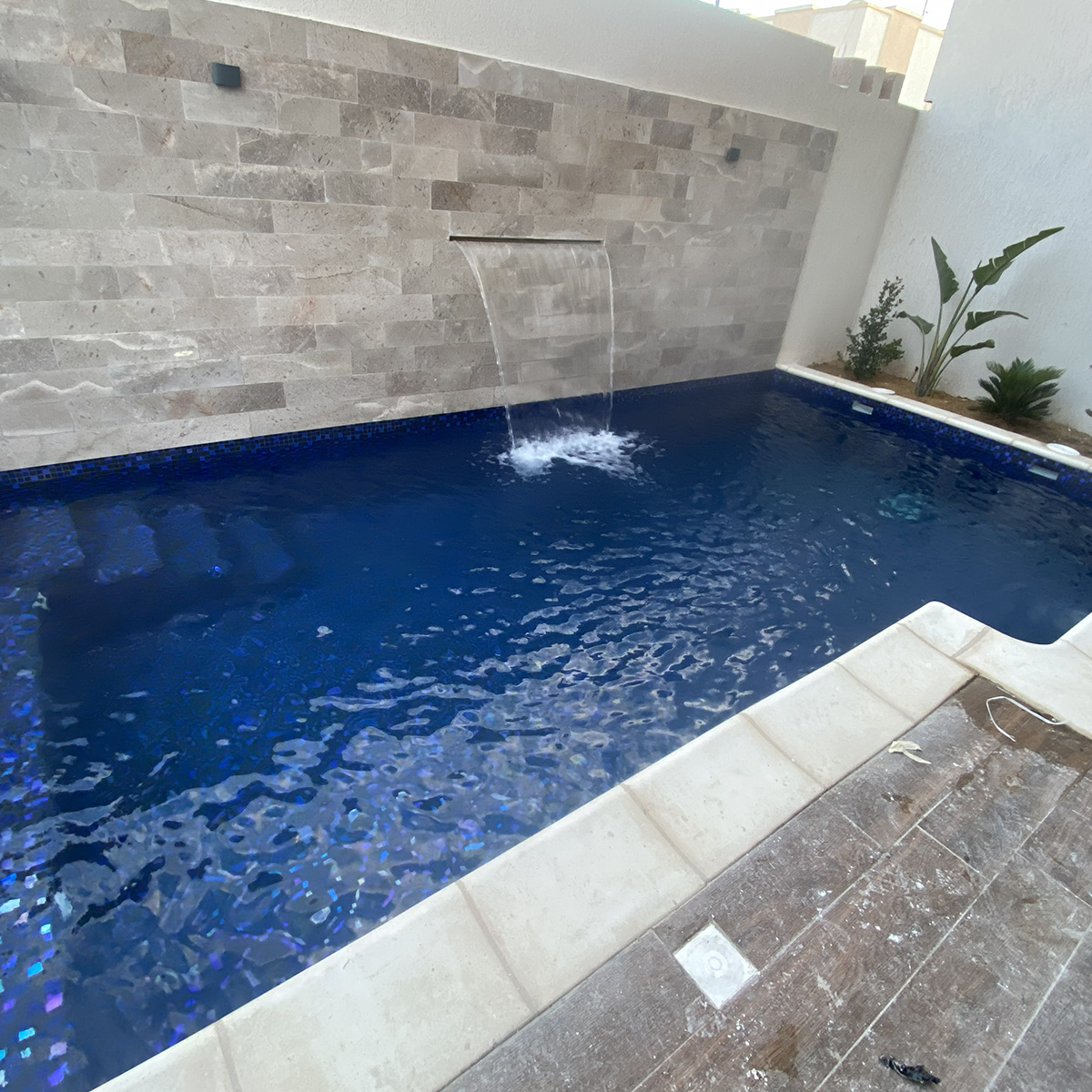 Piscine à Skimmer avec projecteurs et Lame d'eau intégrés au mur à Kairouan