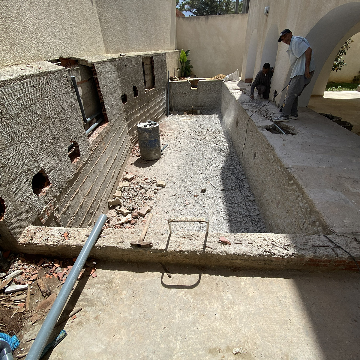 Le projet se distingue par son design épuré, ses marches intégrées et son intégration harmonieuse dans l’espace architectural de la villa. Une fois remplie, la piscine offre un espace de détente raffiné, transformant l’extérieur de la résidence en un véritable lieu de bien-être et de loisirs.